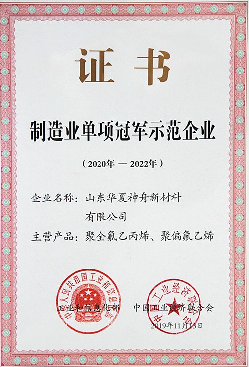 作為含氟材料的龍頭企業,華夏神舟的主營産品聚全氟乙丙烯樹脂、聚偏氟乙烯樹脂是制造業單項冠軍,其技術水平和産品質量國際領先,年産能達8000噸/年、12000噸/年,連續多年産銷量排名全球第三、國内第一。